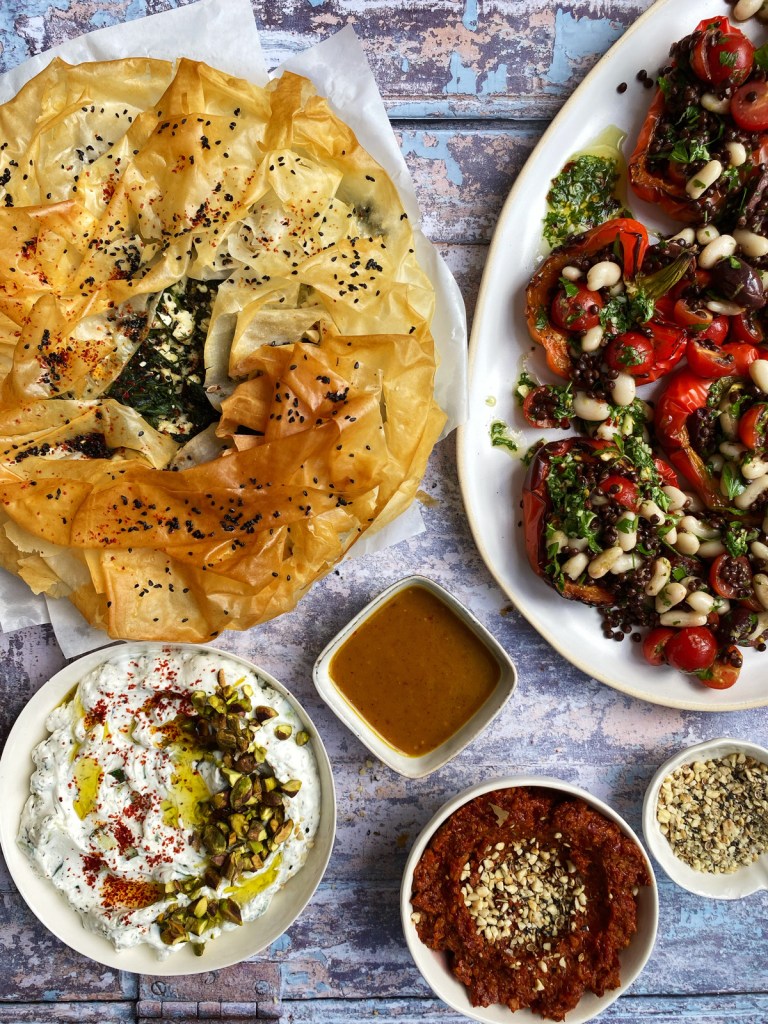 For this menu, we walk through the vibrant markets of the Levant where you will find a rich abundance laid out for you to savour: hemp sacks overflowing with an astonishing variety of dried fruit and nuts; mountains of seasonal fruit, vegetables and herbs; tiny kiosks housing spice masters and bakers selling warm pastries and halva; barrels of mature white cheeses garnished with herbs; nuts, seeds and colourful spices all piled high and literally zinging with colour, flavour and aroma; street hawkers, florists, fishermen and precious boxes of jewel coloured sweet treats decorated with pistachios, almonds and dried rose petals. As always, this menu features the very best in quality Mediterranean products personally selected by Zoi, the founder Raphael’s Mediterranean Deli Products as well as expertly paired wines from Ben, Director of Novel Wines, one the UK’s most exciting wine retailers specialising in the truly unique and wonderful. Share the load and invite your friends to cook along with you to create beautiful communal tables in the garden this summer. Recall your own adventures and weave new stories into those that inspired this beautiful celebration of the rich culinary history of an extraordinary region.