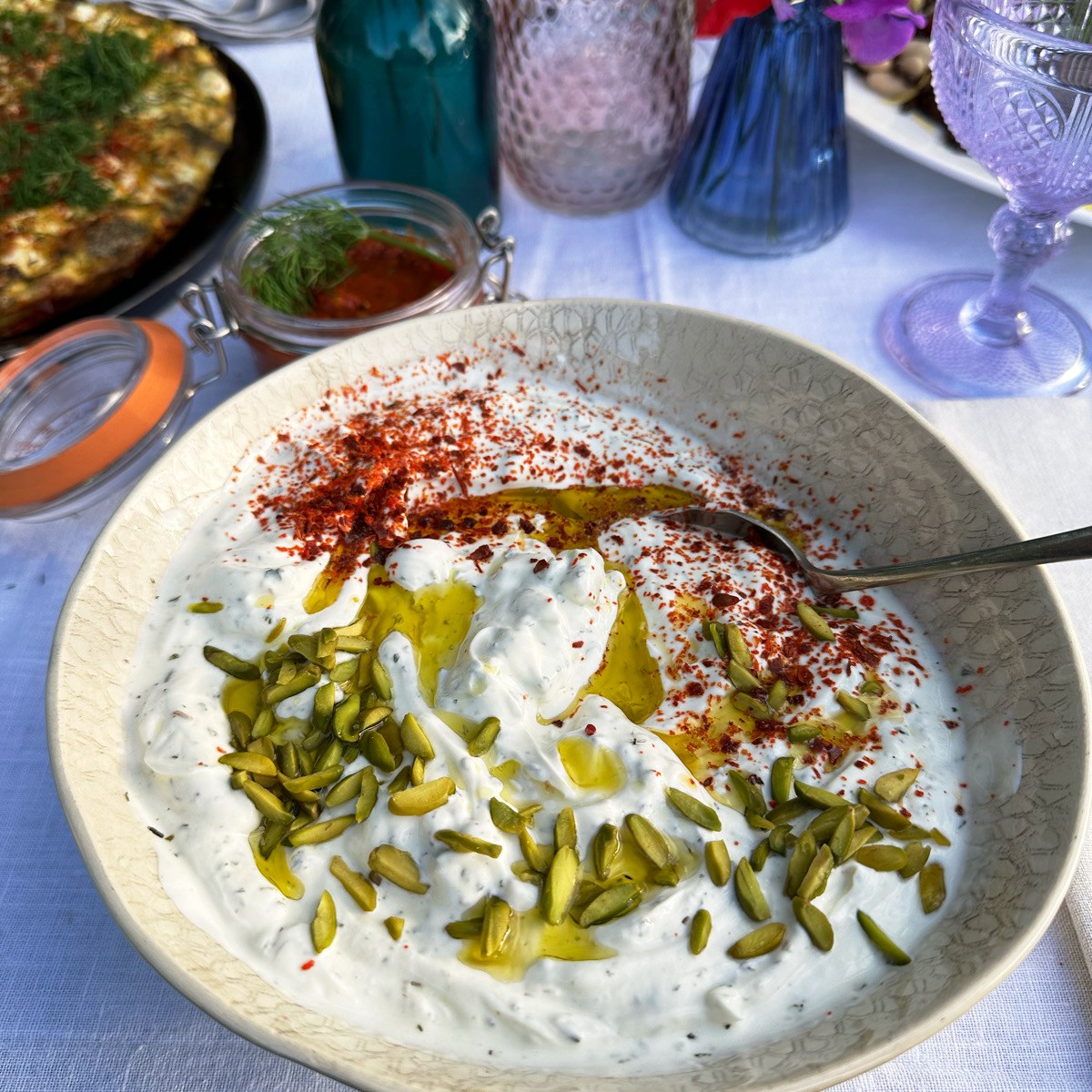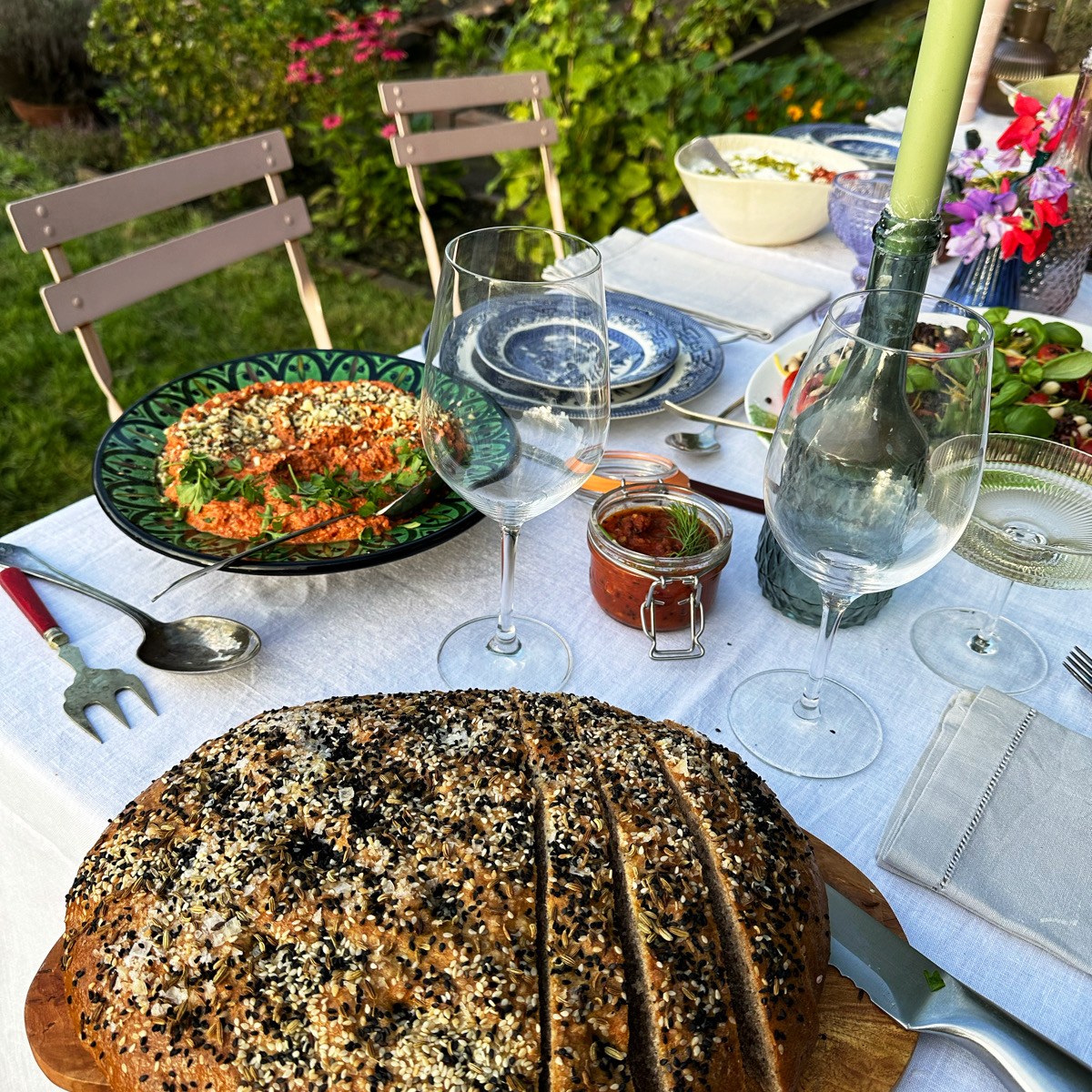 Imagine a table covered with the softest hand woven sea blue linen, wonky bowls and plates, vintage cutlery and vases of hand picked flowers. Piled high upon those bowls and plates is a feast of simple, healthy and seasonal food elevated into something really special through the liberal use of herbs, spices and interesting ingredients gathered from my travels around the countries that kiss the coast of the Mediterranean; from the delicately fragrant hills of Italy and Greece to the big gutsy flavours of Turkey, Lebanon and Palestine.